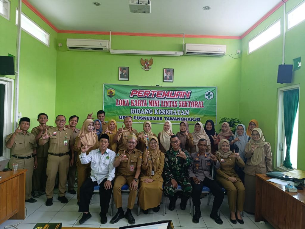 Lokakarya Mini Lintas Sektoral merupakan suatu pertemuan antar petugas puskesmas dengan sektor terkait untuk meningkatkan kerjasama tim, memantau cakupan pelayanan puskesmas dan membina peran serta masyarakat secara terpadu agar dapat meningkatkan fungsi puskesmas. Dalam rangka penguatan program kerja dan sebagai bentuk upaya penggalangan serta pemantauan kegiatan sesuai dengan perencanaan, puskesmas di wilayah kerja Kecamatan Tawangharjo melaksanakan kegiatan Lokakarya Mini Lintas Sektor melalui kerjasama tim baik lintas program maupun lintas sektor.